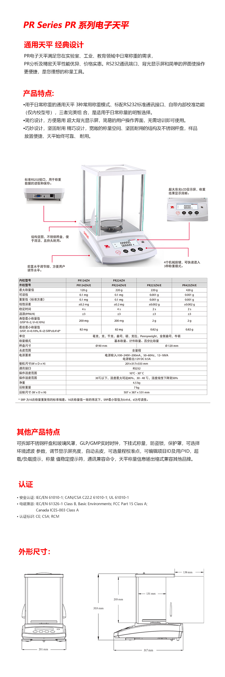 產(chǎn)品名稱(chēng):電子分析天平/PR224ZH/E
