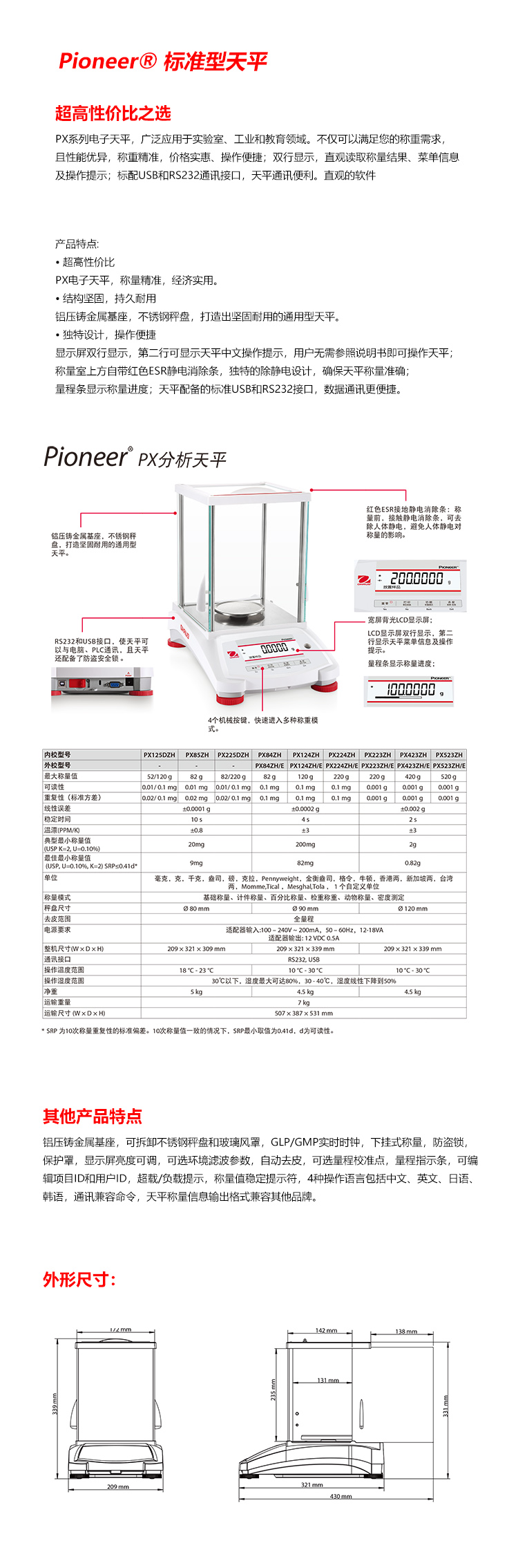 產(chǎn)品名稱:電子精密天平PX523ZH/E